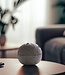 Mondförmiger Aschenbecher mit Deckel, aus Beton und Edelstahl. Unvollkommenheiten sind Teil des Produkts und ahmen die Krater des Mondes nach. Lesen Sie mehr..