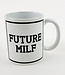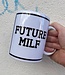 Becher für Kaffee, Tee oder andere Heißgetränke mit Aufdruck 'Future MILF'.