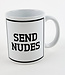 Becher für Kaffee, Tee oder andere Heißgetränke mit Aufdruck 'Send Nudes'.