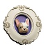 Dieser auffällige, vom Barock inspirierte Rahmen aus weißem Polyresin umrahmt eine Bulldogge in 3D. Lesen Sie mehr..