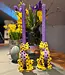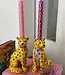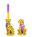 Set aus zwei dekorativen Kerzenständern im tropischen Chic. Die beiden gelb-lila Leoparden wirken f..