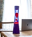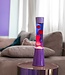 Retro Lavalampe mit rotem Wachs in blauer Flüssigkeit und lila Sockel