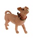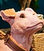 Dekoratives Bild eines niedlichen Hundes mit Halsband, bereit für einen Spaziergang. Lesen Sie mehr..