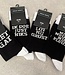 Socken mit der Aufschrift Ik Doe Just Niks. Hergestellt aus Baumwolle.