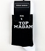 Socken mit der Aufschrift „ Top Madam“. Hergestellt aus Baumwolle.