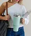Edelstahl-Thermosflasche „On The Go“ – 1.2 L – mit Strohhalm und Griff.