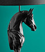 Bringen Sie einen Hauch von Verspieltheit und Eleganz in Ihr Interieur mit dieser einzigartigen Tischampe in Form eines wunderschönen schwarzen Pferdenkopfes. Dieser besondere Blickfang verbindet kunstvoll eine Skulptur mit praktischer Beleuchtung in einem Objekt. Perfekt für alle, die einen originellen Stimmungsmacher für ihr Zuhause suchen!