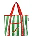 Praktische Tragetasche mit einem ansprechenden Design und einer nachhaltigen Geschichte. Das Design zeigt drei gestickte Oliven an einem Stiel, ergänzt durch markante grüne und weiße Streifen und kontrastierende rote Henkel – eine charmante Anspielung auf Lesen Sie mehr..