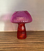 Wundervoll gestaltete Glasvase in Form eines Pilzes, mit einem Farbübergang von Rosa nach Rot. Idea..