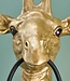 Dekorative Stimmungslampe für die Wand in Form einer goldenen Giraffe, die die Lampe fest in den Mund drückt. Eine Kombination aus Skulptur und Lampe in einem (ohne Glühbirne). Lesen Sie mehr..