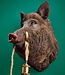 Dekorative braune Stimmungslampe für die Wand, in Form eines Wildschweinkopfes. Eine Kombination aus Skulptur und Lampe in einem (Glühbirne nicht enthalten). Ach ja, sein Name ist Willy.