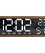 Dieser moderne digitale Wecker besticht sofort durch sein elegantes Gehäuse in Holzoptik und das schlanke LED-Display. Das helle Display zeigt neben der Uhrzeit auch Zusatzinformationen wie Wochentag, Temperatur und Luftfeuchtigkeit an.