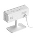Futuristic digital alarm clock with a rectangular silver-colored mirrored LED display and a curved matte white base. This unusual alarm clock has a 12 or 24 hour display, a digital beep alarm, snooze function, night mode and brightness setting, and option Read more..