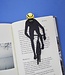 Bookmark inspired by a cyclist. The bicycle helmet protrudes above the pages. This way you always know immediately where you left off in your book.