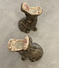 Two candle holders in the shape of two hungry hippos with open mouths.