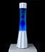 Retro lava lamp with blue wax and blue/white striped base, a particularly stylish lava lamp from Fis..