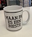Mug for coffee, tea or other hot drinks. With print in local dialect: 'Maan Pa es een Bieste' (My F..