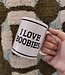 Mug for coffee, tea or other hot drinks with print 'I Love Boobies'.