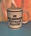 Mug for coffee, tea or other hot drinks. With print in local dialect: Ne Welgemiende Kust Maan Kluuten (kiss my balls).