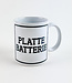 Mug for coffee or tea. With imprint in Ghent dialect: Platte Batterie (meaning: empty battery).