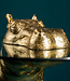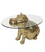 Side table in the shape of a hippopotamus raising its head above the water surface (= table top). A unique combination of golden sculpture and side table in one. Read more..