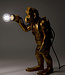 Golden moodlight in the shape of an upright monkey n a diving suit. A crazy combination of a golden sculpture and lamp in one (bulb not included). Read more..