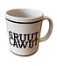 Mug for coffee, tea or other hot drinks. With print in local dialect: Gruut Lawijt. This is said to someone who is very exuberant and makes a lot of noise.