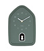 The house-shaped design and matte color give the clock a warm, modern look.