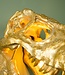 Decorative wall mood lamp in the shape of the golden dinosaur Rexy. Rexy puts the lamp in his open mouth. A combination of sculpture and lamp in one (bulb not included).