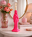 Un discret bougeoir orne le sommet, conférant à cette sculpture une double fonction décorative. Dès que la bougie est allumée, une douce lueur chaleureuse se diffuse, mettant en valeur les détails délicats de la robe et l'expression du visage. Idéale pour créer un coin cosy dans le salon, la chambre ou le couloir.