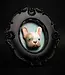 Ce cadre d'inspiration baroque en polyrésine d'un noir profond encadre un chien bouledogue en 3D. Lire plus..
