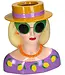 Un vase pour les vraies fashionistas. Apportez une touche d'ambiance italienne à votre intérieur avec ce vase unique, conçu comme une dame à la mode. La dame porte un élégant pull-over violet piqué de citrons, ajoutant une touche vibrante et ensoleillée inspirée des plantations d'agrumes italiennes.