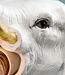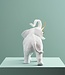 Lampe animalière dorée en forme d'éléphant blanc aux défenses dorées. Une combinaison de sculpture et de lampe en un seul objet (ampoule non incluse). Lire plus..