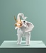 Lampe animalière dorée en forme d'éléphant blanc aux défenses dorées. Une combinaison de sculpture et de lampe en un seul objet (ampoule non incluse).