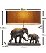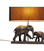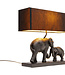 Cette lampe de table unique allie élégance rustique et charme exotique. Deux éléphants finement sculptés soutiennent la lampe noire massive, tandis que l'intérieur doré de l'abat-jour en lin diffuse une lumière chaleureuse et intime.
