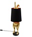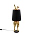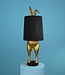 Lampe de table en forme de mignon lapin doré caché derrière son abat-jour noir. Une combinaison d..