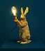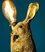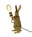 Lampe d'ambiance en forme de lapin debout. Entre ses pattes avant, il tient fièrement la lampe pour apporter un peu plus de lumière et d'atmosphère. Une belle combinaison d'une sculpture dorée et d'une lampe en une seule pièce (ampoule non incluse).