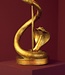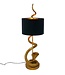 Lampe de table dorée en forme de serpent cobra sinueux. Avec abat-jour noir. Une combinaison frappante d'une sculpture dorée et d'une lampe en un (ampoule non incluse).