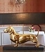 Lampe d'ambiance en forme de l'un des chiens les plus aimés au monde : le teckel (aussi appelé chien saucisse). Une remarquable combinaison d'une sculpture dorée et d'une lampe en un seul. Lire plus..