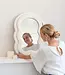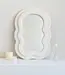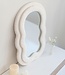 Miroir asymétrique ondulé blanc cassé recouvert de tissu peluche doux. Un design unique et tendan..