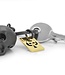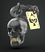Porte-clés en métal en forme de crâne noir avec des dents en or. Lire plus..