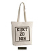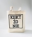 Sac fourre-tout pratique en coton robuste et avec base large. Imprimez en dialecte gantois, en disant 'Kijkt Zo Nie'.
