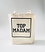 Sac fourre-tout pratique en coton robuste et avec base large. Avec un imprimé "girl power": 'Top Madam'. Lire plus..
