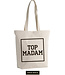 Sac fourre-tout pratique en coton robuste et avec base large. Avec un imprimé "girl power": 'Top Madam'.