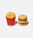 Faites briller votre cuisine avec ce set de salières et poivrières en céramique, conçues en forme de Frites & Hamburger.
