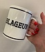 Tasse pour café, thé ou autres boissons chaudes. Avec impression en dialecte local : Blageur. C'..