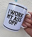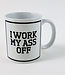 Tasse pour le café, le thé ou d'autres boissons chaudes avec l'impression 'I Work My Ass Off'.