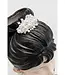 Les bijoux en argent et en perles attirent le regard, accentués par les cheveux noirs et les vêtements noirs.