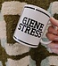 Mok voor koffie, thee of andere warme dranken met opdruk in het Gents dialect 'Giene Stress' (no worries, maak u niet druk).
