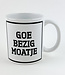 Mok voor koffie, thee of andere warme dranken met opdruk in het Gents dialect: 'Goe bezig moatje' (G..
